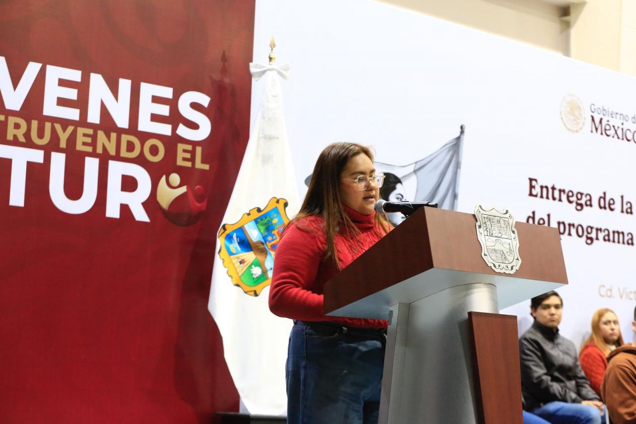 “Este programa no solo enriquecerá mis conocimientos, sino que también me hará sentirme respaldada y valorada en mi camino hacia un futuro prometedor. Quiero agradecer a la doctora Claudia Sheinbaum Pardo, presidenta de México, gracias por liderar con el corazón y por pensar siempre en quienes más lo necesitan, al doctor Américo Villarreal Anaya, gobernador de nuestro estado, por creer en los jóvenes de nuestro estado y abrirnos las puertas hacia un futuro con más oportunidades”.