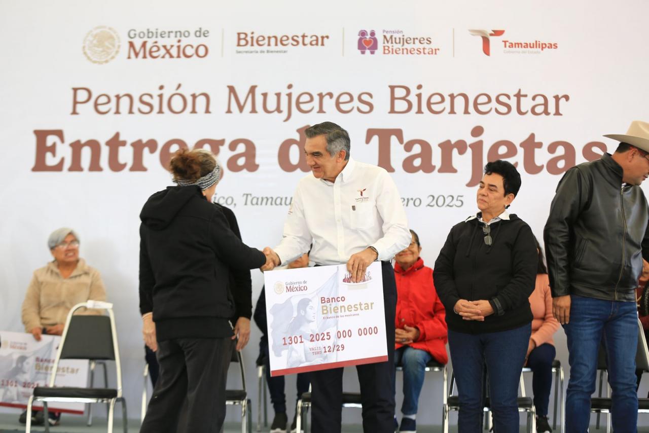 Junto al delegado de Bienestar Federal, Luis Lauro Reyes Rodríguez, el gobernador entregó la tarjeta de la Pensión Mujeres Bienestar a seis representantes de Tampico, Madero y Altamira, y aseguró que este programa es un acto de justicia a las mujeres de más de 60 años por su dedicación al cuidado de sus familias.