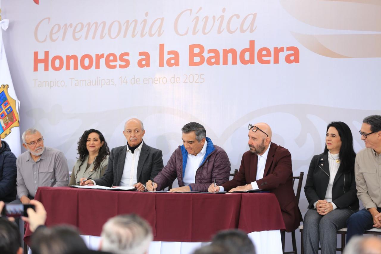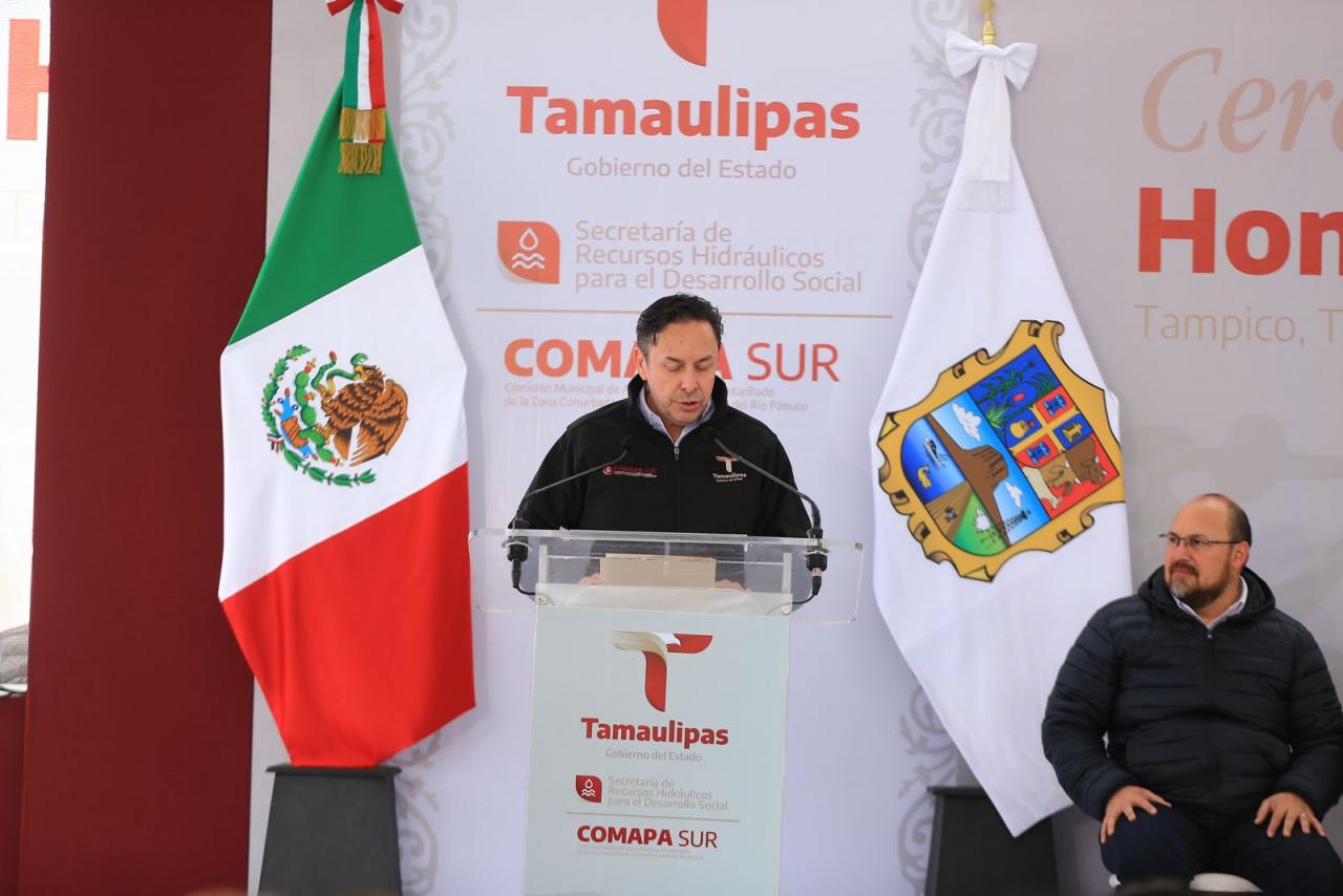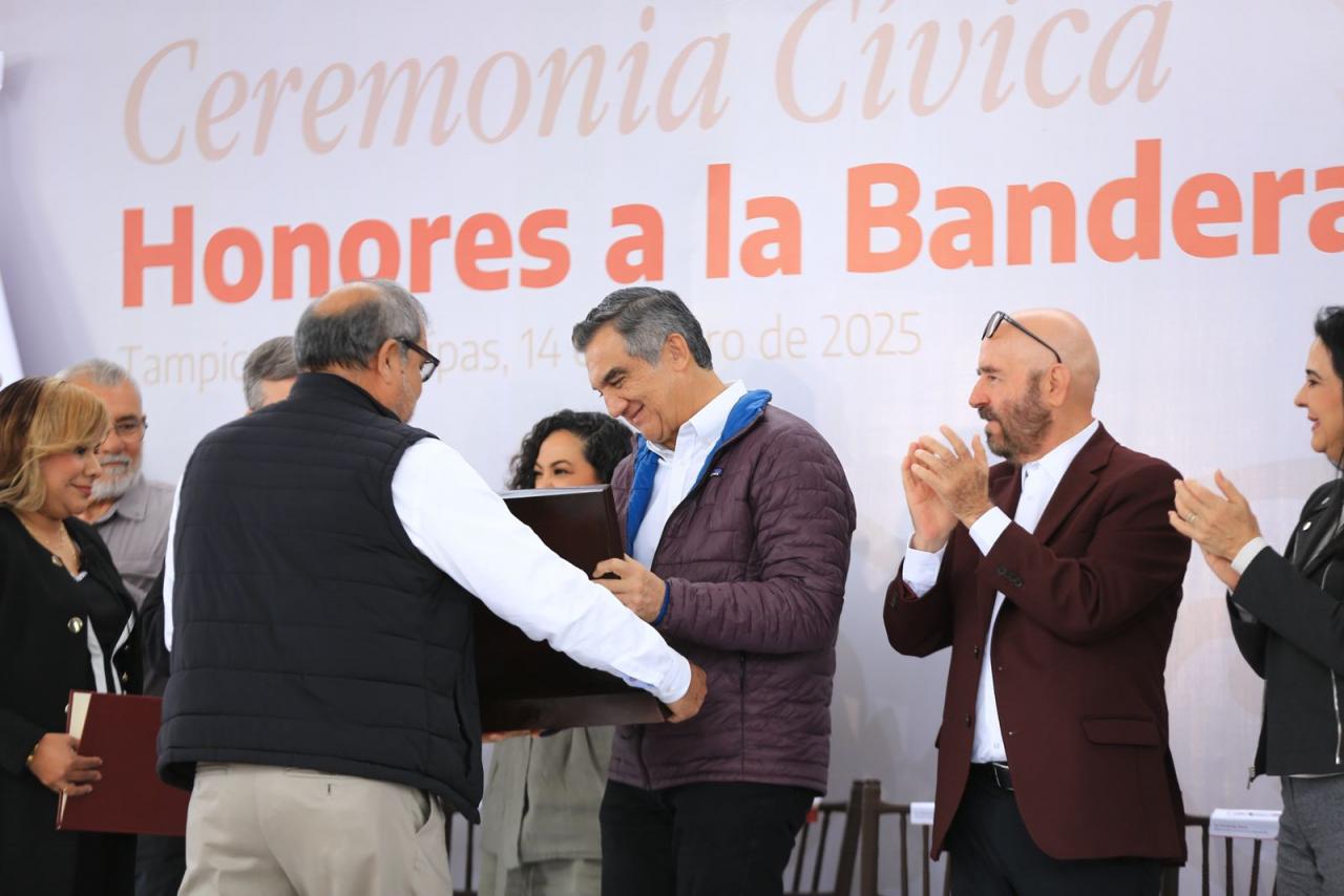 Fue en el marco de la ceremonia cívica de honores celebrada este martes en las instalaciones de la Comapa Sur, donde el gobernador también develó una placa y recibió un reconocimiento del Consejo Ciudadano de Colonos de Tampico, Madero y Altamira por su liderazgo para afrontar y superar la crisis hídrica que se vivió en esta región el año pasado.