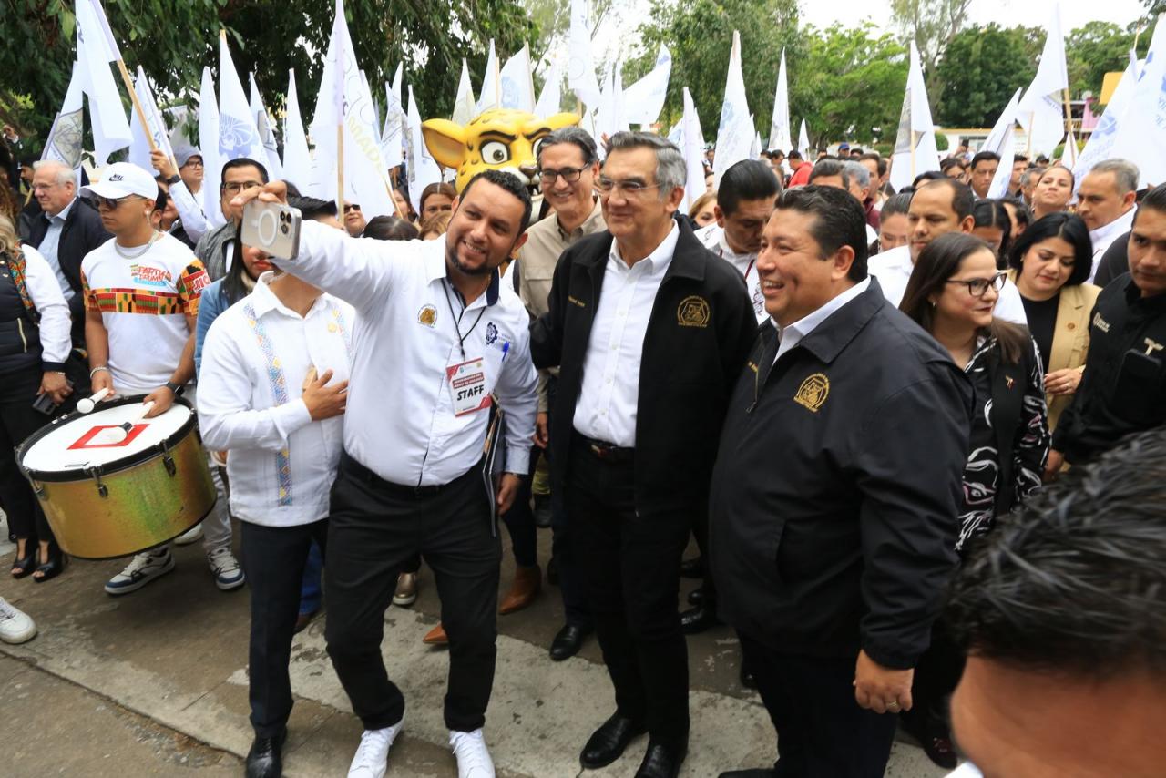 En estos eventos acompañaron al gobernador: Héctor Joel Villegas González, secretario general de Gobierno; Lucía Aimé Castillo Pastor, secretaria de Educación; Pedro Cepeda Anaya, secretario de Obras Públicas; la senadora Olga Sosa Ruiz; la alcaldesa de Tampico, Mónica Villarreal, y el alcalde de Altamira, Armando Martínez Manríquez.