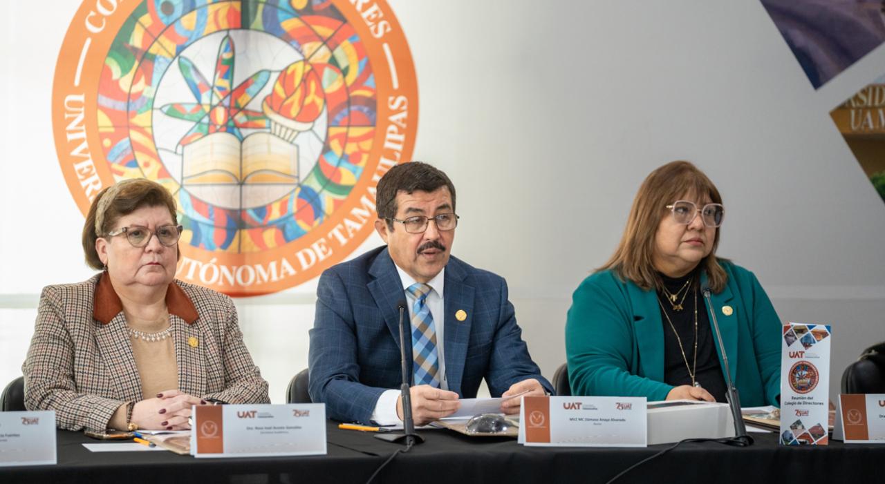 El rector Dámaso Anaya Alvarado presidió, en el Campus Victoria, la décima reunión del Colegio de Directores de la Universidad Autónoma de Tamaulipas (UAT), en cuyo marco expuso una serie de proyectos para el desarrollo de esta casa de estudios.