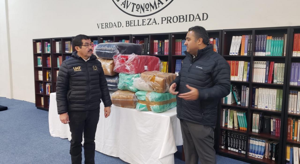 Acompañado por el director de la Facultad, René Adrián Salinas Salinas, el rector visitó el espacio habilitado como refugio en el auditorio del plantel, donde resaltó la colaboración de la Universidad con el gobierno estatal y municipal para servir a la sociedad no solo en lo académico, sino también en contingencias ambientales como las que se han presentado en esta temporada invernal.