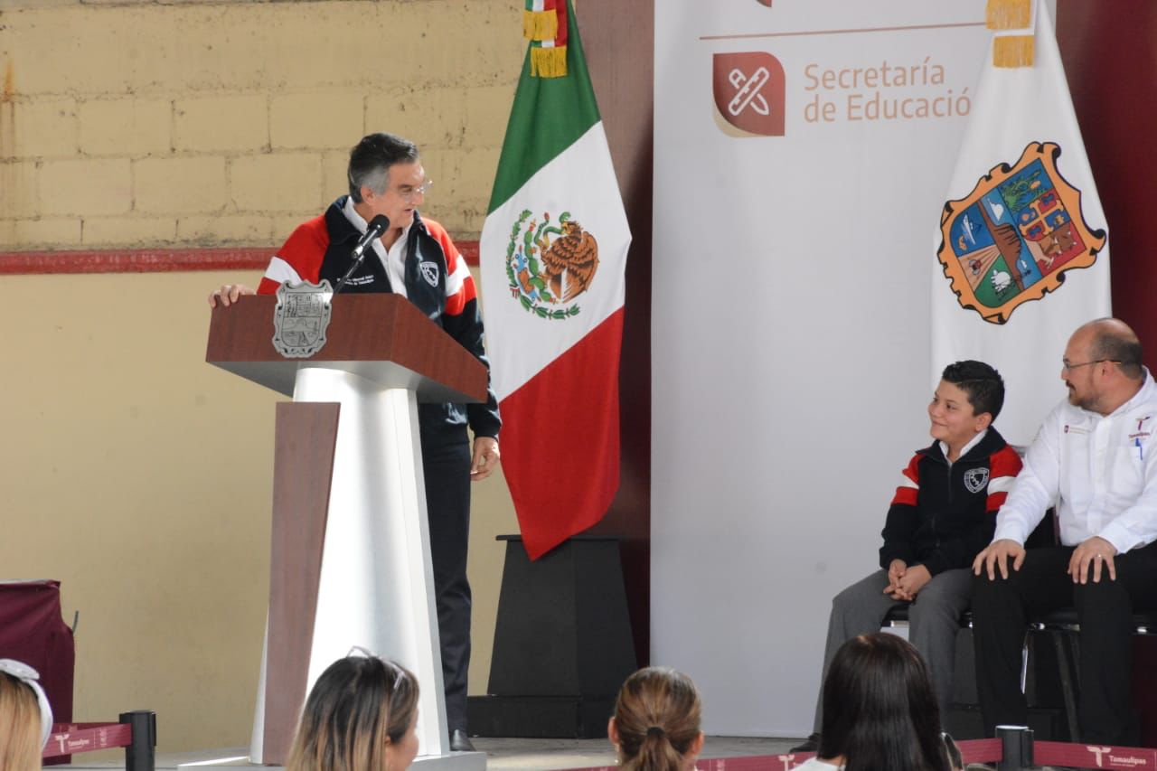 En un emotivo acto realizado en la escuela primaria “Juana de Asbaje y Ramírez” de la capital tamaulipeca, y ante el cálido recibimiento de la población escolar, el mandatario destacó la importancia de la educación como base para un futuro mejor, así como los esfuerzos que hace el Gobierno del Estado para la educación.