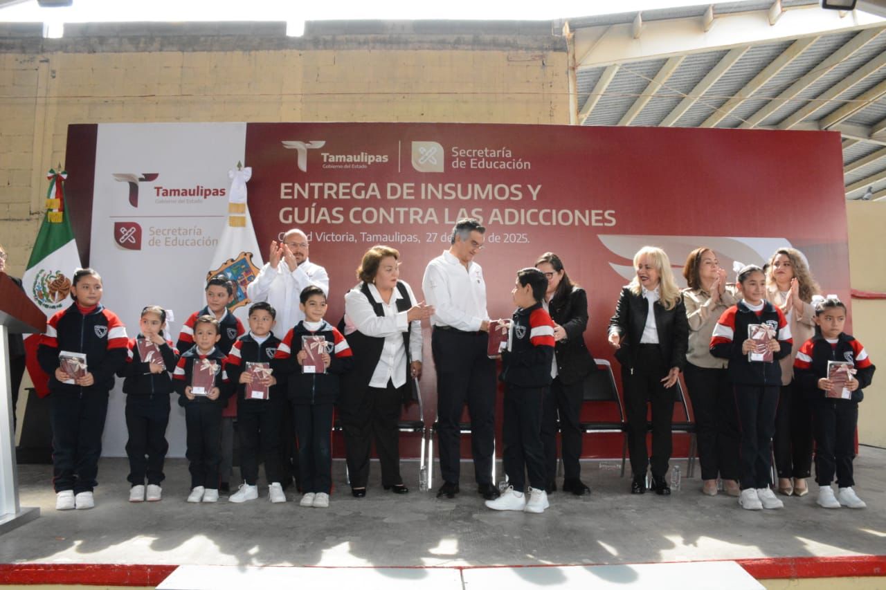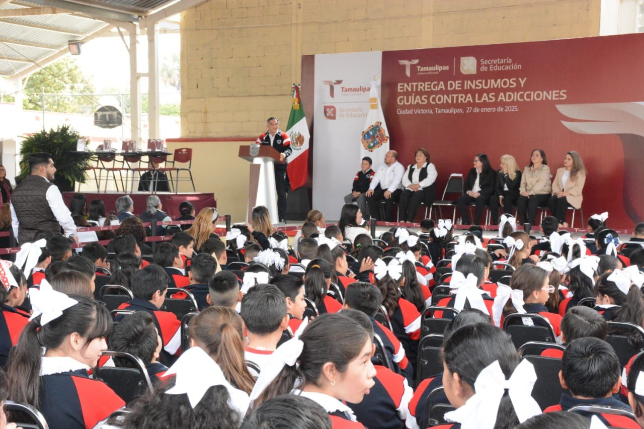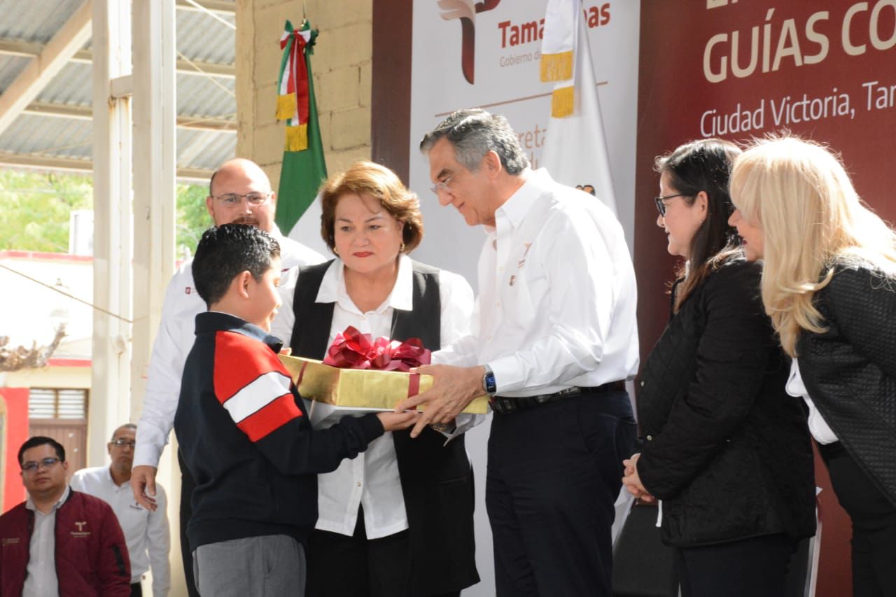 Ciudad Victoria, Tamaulipas.- En un esfuerzo sin precedentes para que las y los alumnos de educación básica tengan las herramientas necesarias para su formación académica, el gobernador de Tamaulipas Américo Villarreal Anaya hizo entrega de 305 “tablets”, además de mobiliario escolar por el orden de los 27.1 millones de pesos que beneficiará a 23 mil 343 estudiantes de 30 municipios y, de manera simbólica, distribuyó 305 mil 377 guías contra las adicciones, que serán repartidas a estudiantes de educación media superior.