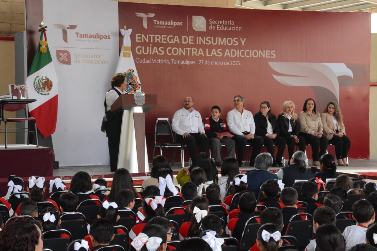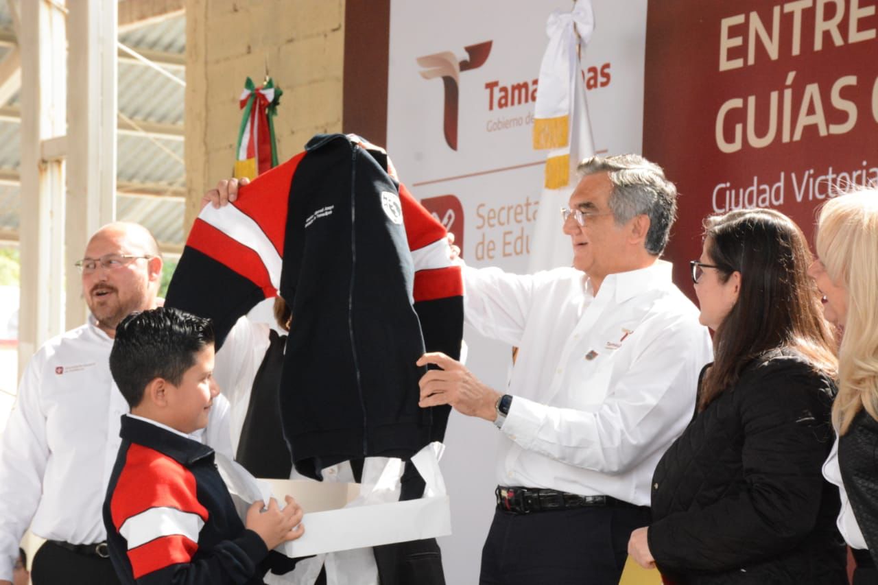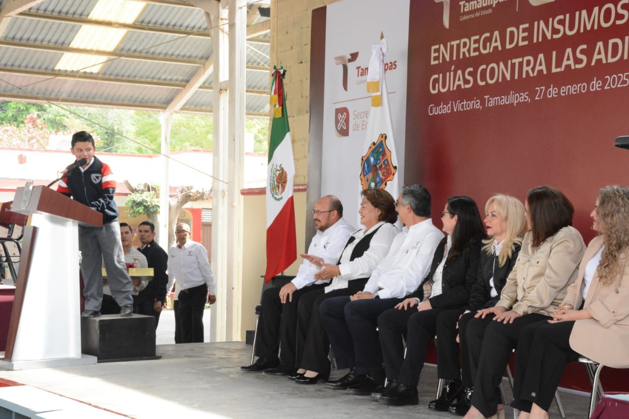 Ciudad Victoria, Tamaulipas.- En un esfuerzo sin precedentes para que las y los alumnos de educación básica tengan las herramientas necesarias para su formación académica, el gobernador de Tamaulipas Américo Villarreal Anaya hizo entrega de 305 “tablets”, además de mobiliario escolar por el orden de los 27.1 millones de pesos que beneficiará a 23 mil 343 estudiantes de 30 municipios y, de manera simbólica, distribuyó 305 mil 377 guías contra las adicciones, que serán repartidas a estudiantes de educación media superior.