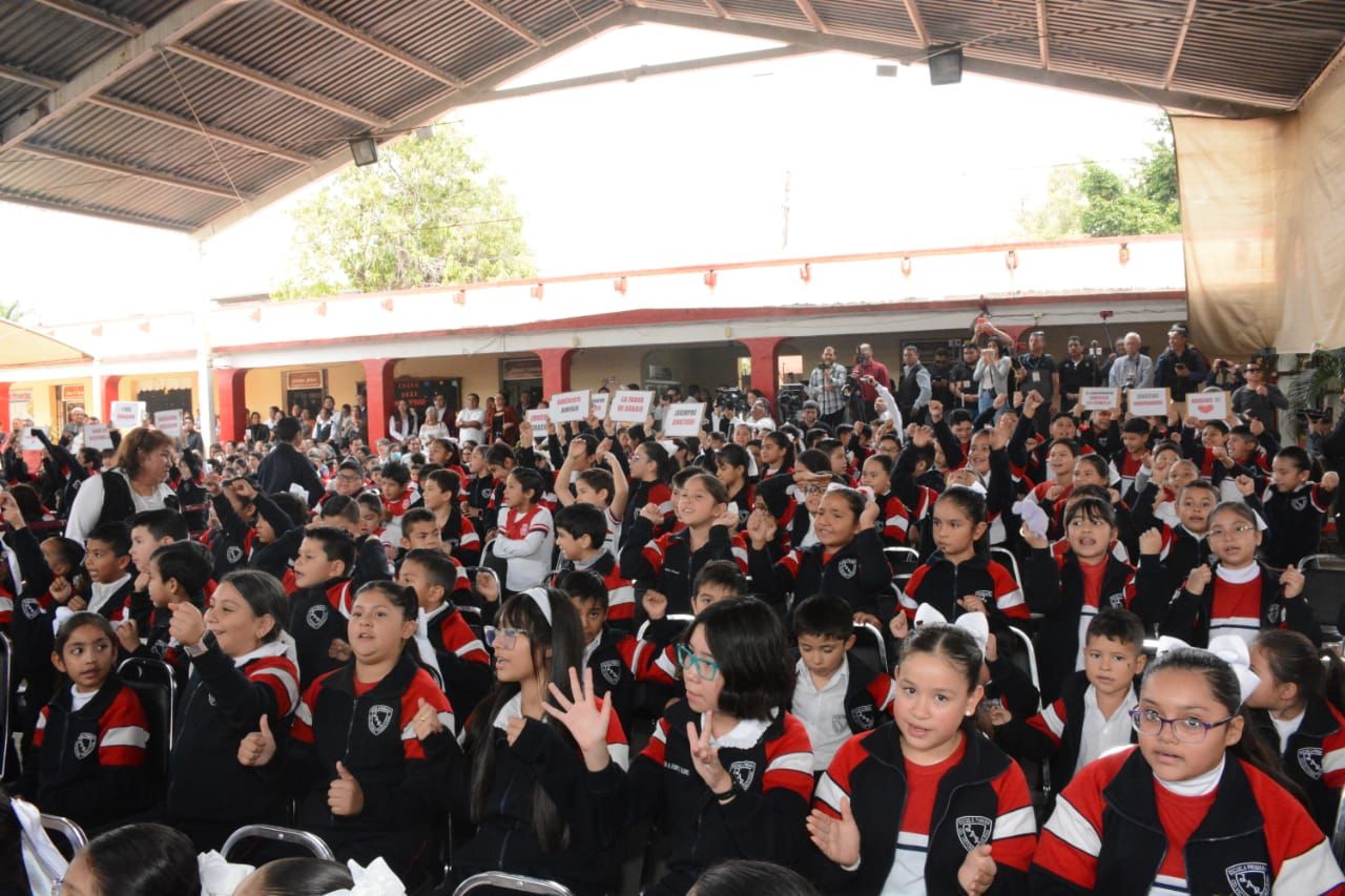 «Ustedes han demostrado ser una escuela disciplinada, con buenos resultados académicos, y por eso tienen este obsequio de parte del Gobierno del Estado. Estas “tablets” son para que continúen superándose y aprovechen las herramientas que ponemos a su disposición”, señaló al tiempo de escuchar las exclamaciones de alegría de las y los alumnos.