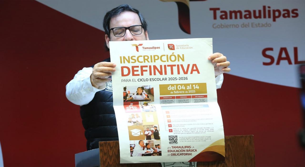 Ciudad Victoria, Tamaulipas.– Como parte de la política inclusiva y humanista que impulsa el gobernador Américo Villarreal Anaya, todas las niñas, niños y adolescentes tendrán un lugar asegurado en las escuelas de Tamaulipas para el próximo ciclo escolar 2025–2026, señaló Miguel Ángel Valdez García, subsecretario de Planeación de la Secretaría de Educación de Tamaulipas, al referirse al proceso de inscripciones definitivas que se llevará a cabo del 4 al 14 de febrero.
