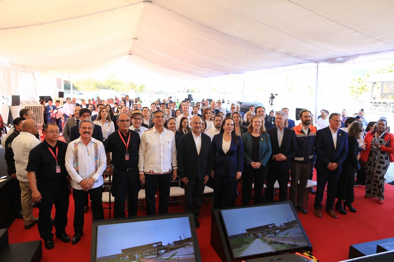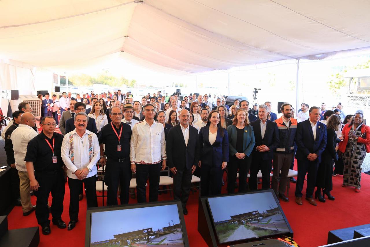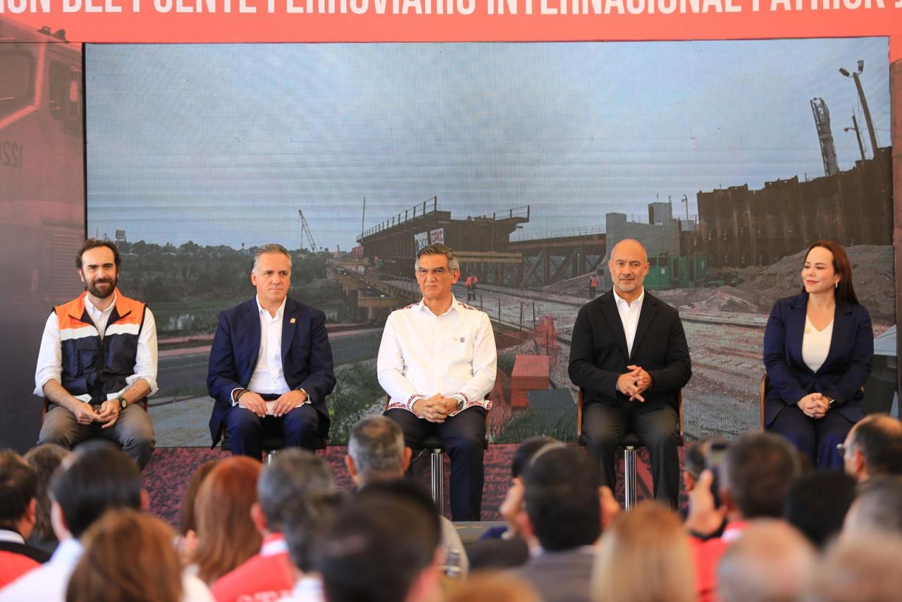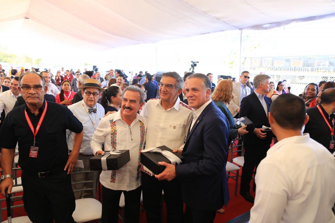 Nuevo Laredo, Tamaulipas. – El gobernador Américo Villarreal Anaya y el secretario de Infraestructura, Comunicaciones y Transportes, Jesús Antonio Esteva Medina, junto con directivos de la empresa Canadian Pacific Kansas City, inauguraron en esta ciudad el puente ferroviario internacional Patrick J. Ottensmeyer, que permitirá duplicar el intercambio comercial entre el corazón industrial de México con Estados Unidos y Canadá.