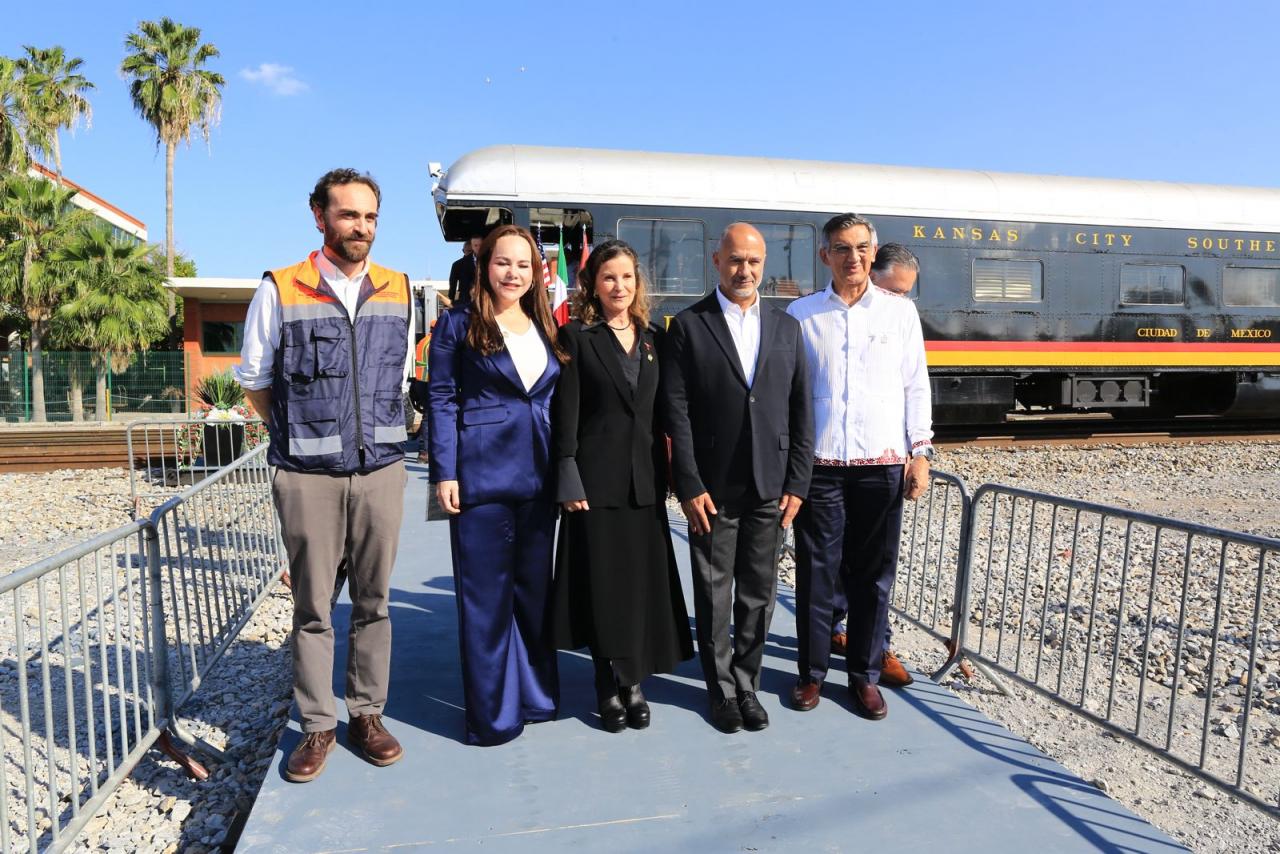 Luego de realizar un recorrido a bordo del tren El Mexica, hasta la línea divisoria entre los dos Laredos, en donde se realizó el corte del listón inaugural, por parte de autoridades y directivos de la empresa, Américo Villarreal afirmó que desde Tamaulipas se fortalece y moderniza la conectividad que se pone a disposición del comercio internacional.