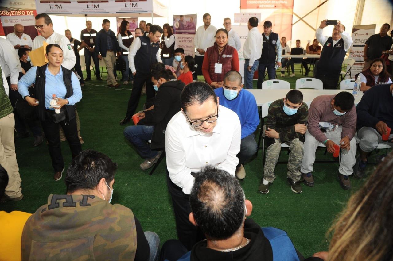 Tras recorrer el Centro de Atención a Migrantes, habilitado en la explanada del Parque Cultural de esta ciudad, Rodríguez Velázquez afirmó que, por instrucciones de la presidenta Claudia Sheinbaum, se ha realizado un despliegue como parte de la estrategia “México Te Abraza” para recibir a los connacionales con la mejor atención posible antes de que sigan su camino a sus comunidades de origen.