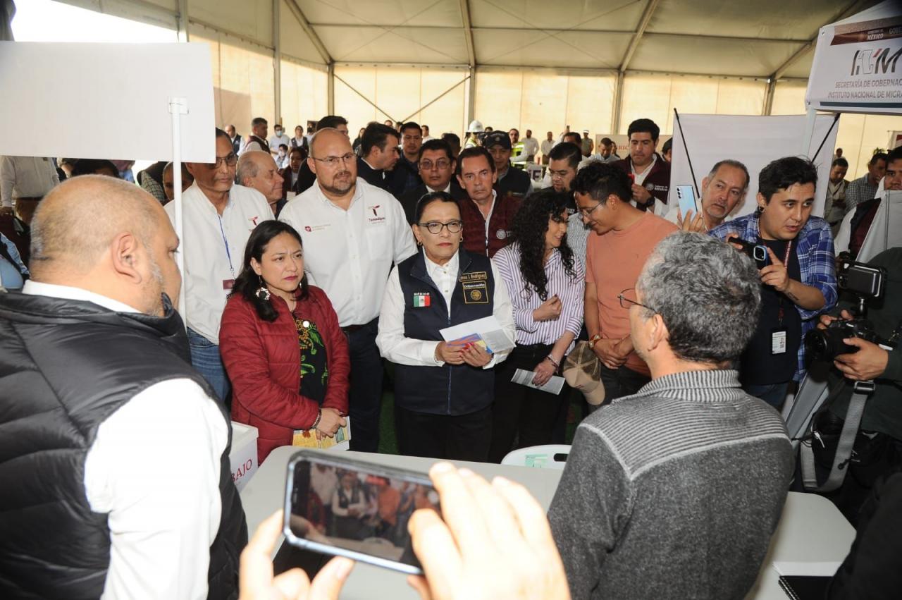 Acompañada por Arturo Medina, subsecretario de Derechos Humanos, Población y Migración de la Secretaría de Gobernación, y por Francisco Garduño, comisionado del Instituto Nacional de Migración, la funcionaria explicó que el gobierno federal mantendrá este operativo en diferentes puntos de la frontera «el tiempo que sea necesario».