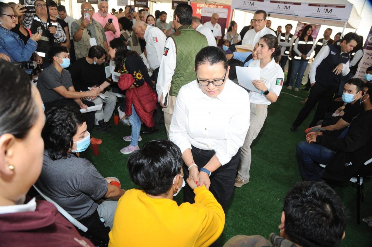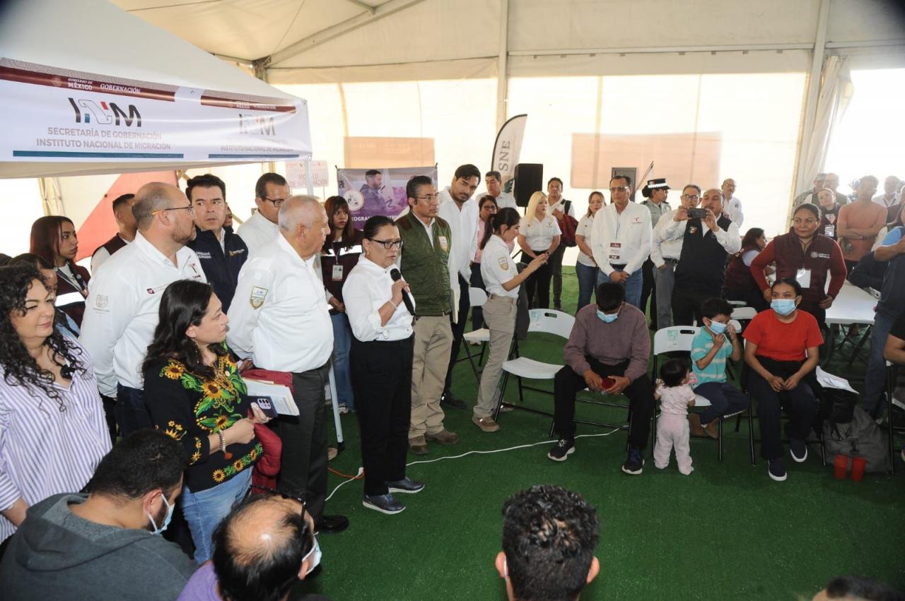 Posteriormente, la funcionaria federal recibió a un grupo de migrantes a los que les explicó detalladamente la estrategia “México te Abraza”, que comprende, entre otros rubros, alimentación, servicios médicos, atención psicológica, una tarjeta con apoyo económico, servicio consular, incorporación a los programas de Bienestar y a fuentes de empleo.