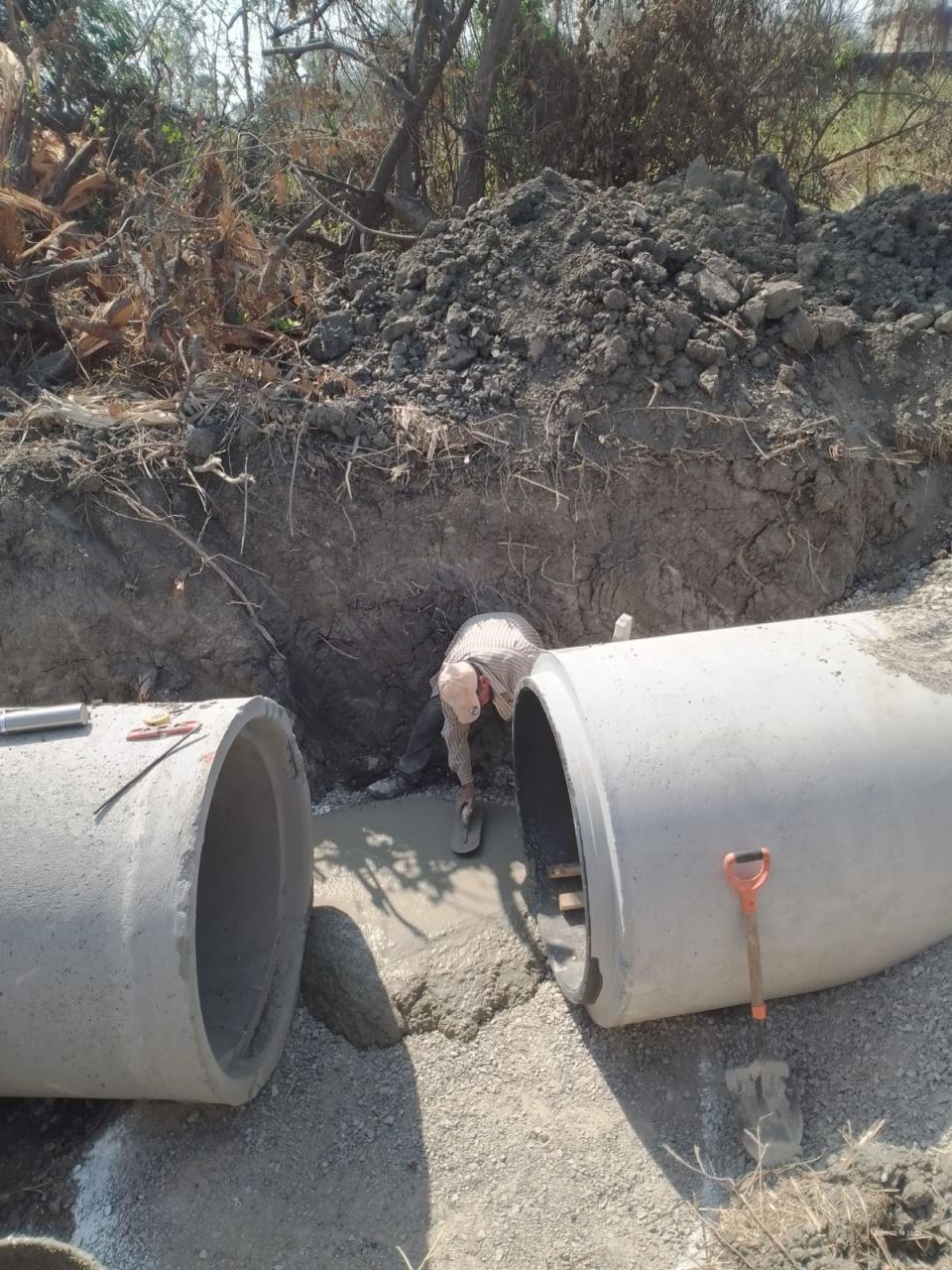 El titular de la dependencia, Pedro Cepeda Anaya mencionó que se han instalado 205 metros de tubería de concreto, además de la instalación del colector.