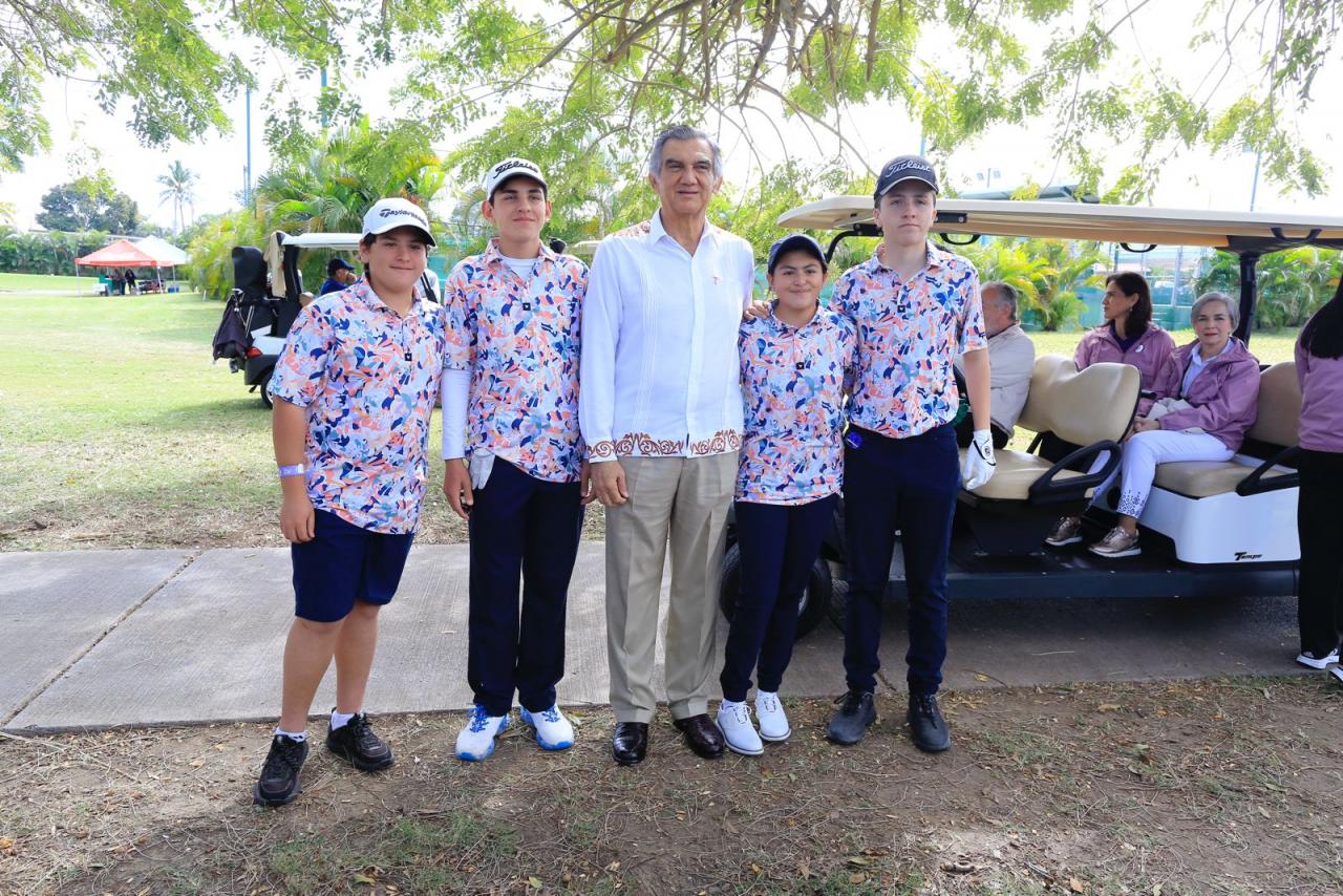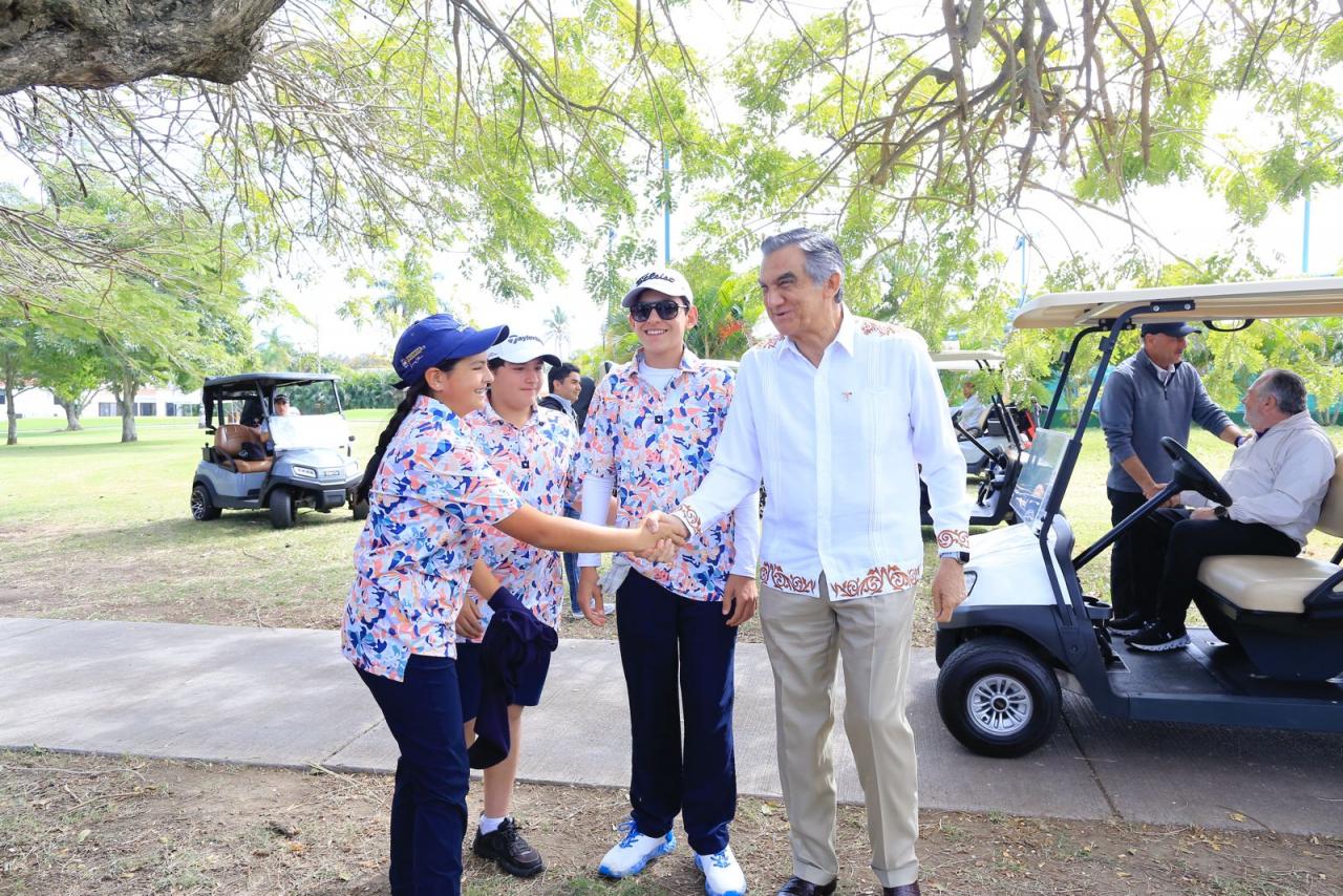 Luego de un recorrido por el campo del Club Campestre, el mandatario tamaulipeco convivió con las y los jugadores participantes y asistió a la ceremonia de premiación de las y los ganadores de este torneo.