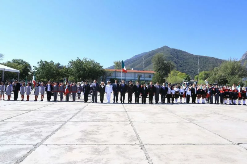 Tras abanderar a las escoltas de cinco escuelas primarias, Américo Villarreal recordó́ que la bandera fue estandarte de identidad de los insurgentes y recoge el tributo necesario a nuestros pueblos originarios.