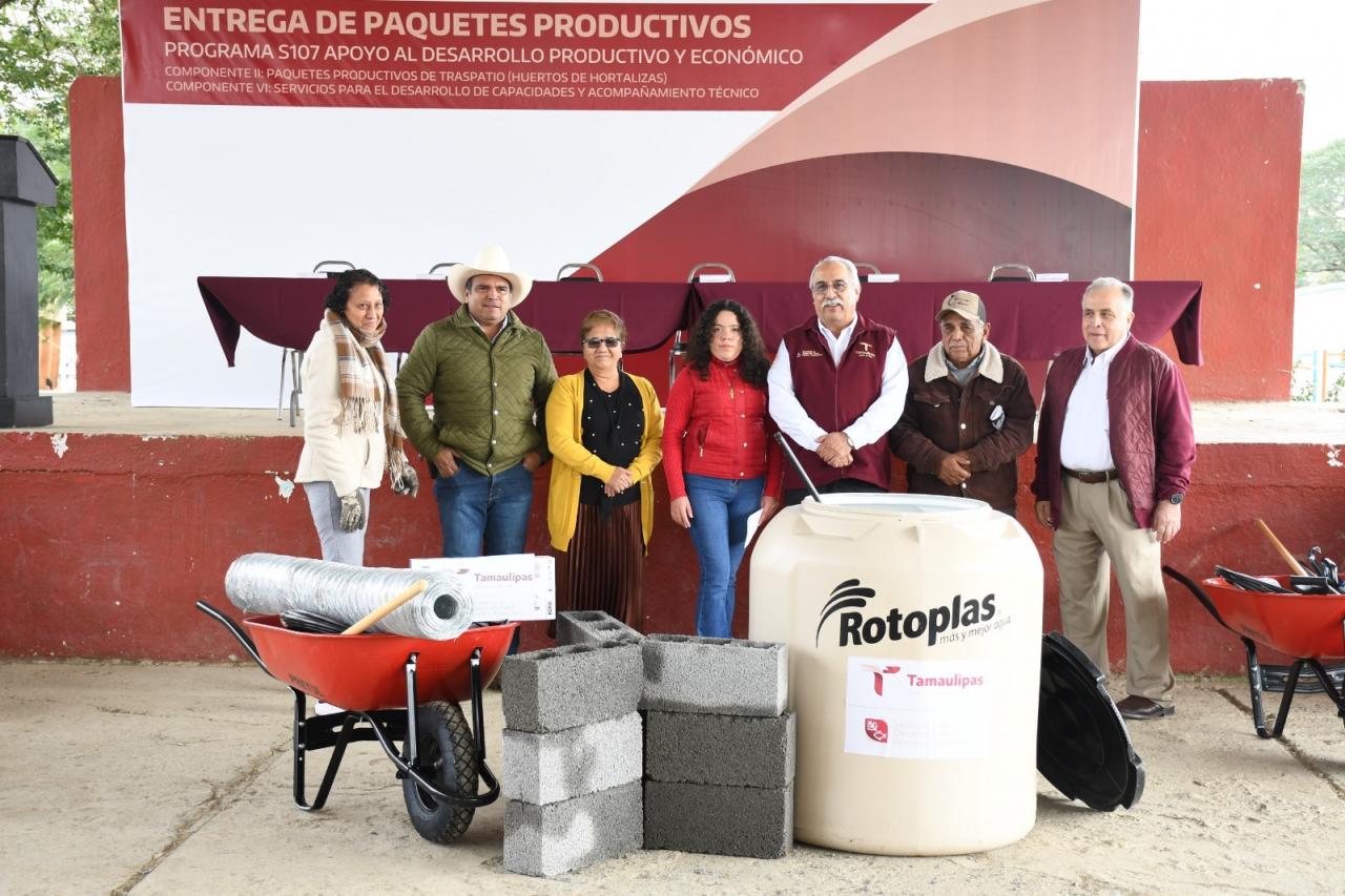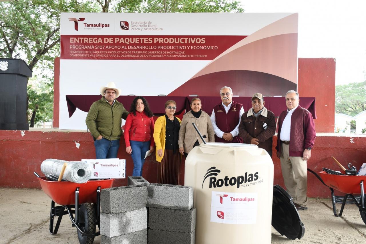 Ciudad Victoria, Tamaulipas. – Como una alternativa de promover la autosuficiencia alimentaria, mejorar la nutrición de las familias rurales mediante la obtención de alimentos frescos y nutritivos, la Secretaría de Desarrollo Rural, Pesca y Acuacultura a través del Programa de Apoyo al Desarrollo Productivo y Económico, dispersó un total de mil 480 paquetes productivos de traspatio en ocho municipios de Tamaulipas.