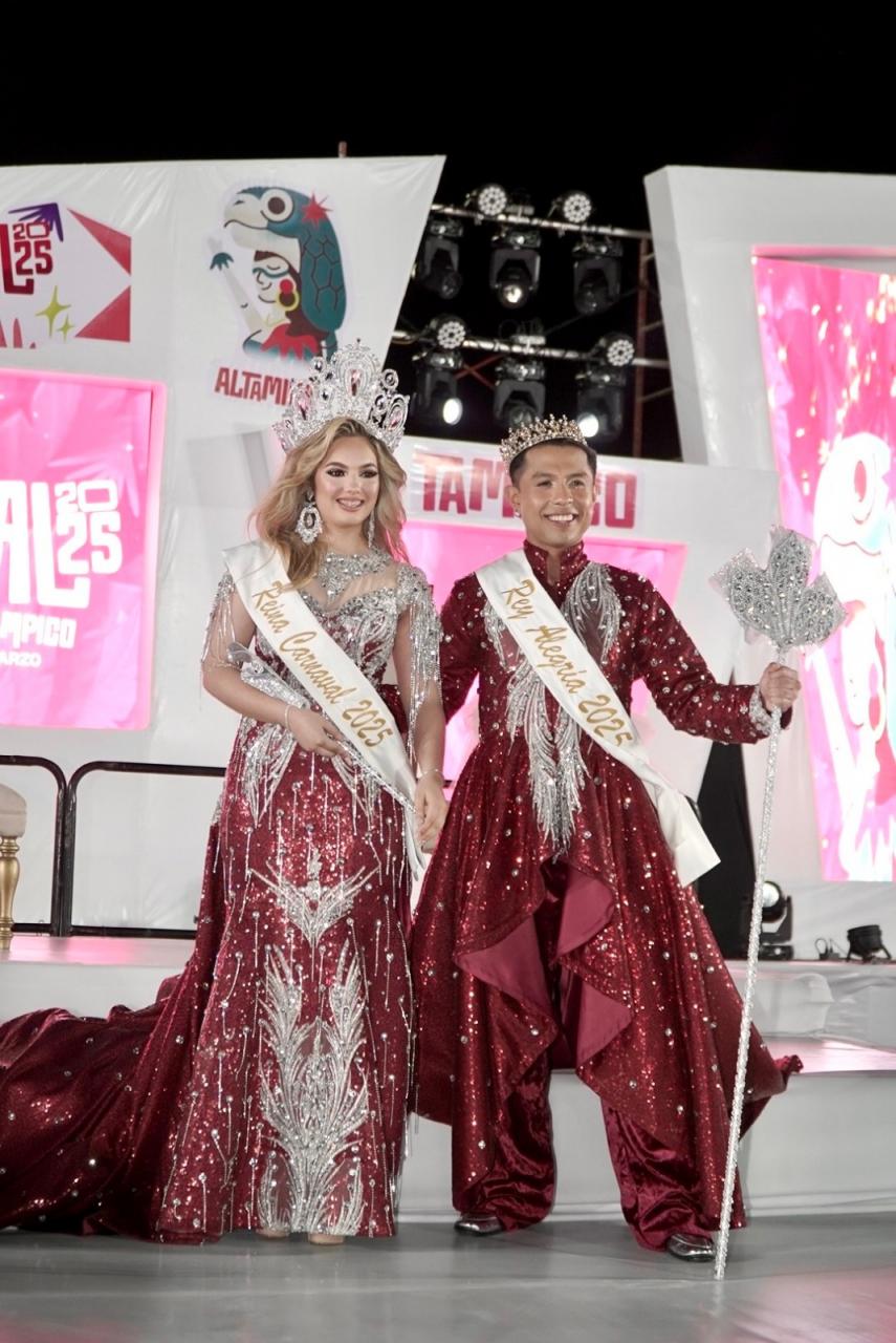 Junto a Mónica Villarreal Anaya, presidenta municipal de Tampico; Erasmo González Robledo, presidente municipal de Ciudad Madero y Armando Martínez Manríquez de Altamira, coronaron a Hanaa Lee Morales como Reina del Carnaval y al Rey de la Alegría, Esteban González González.
