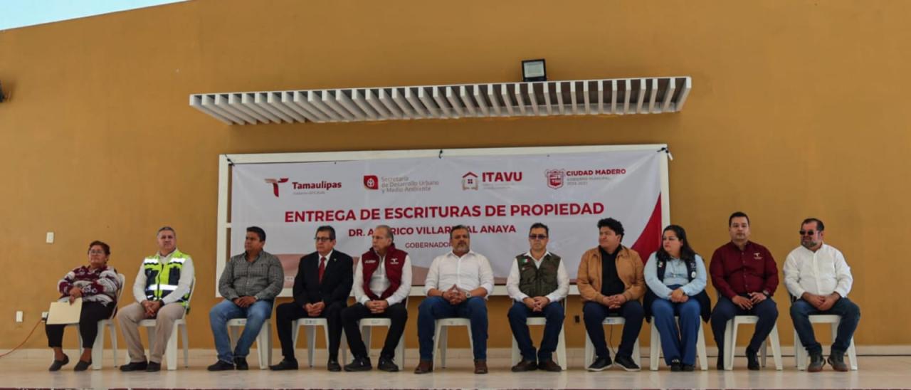La entrega de escrituras contó con la presencia de autoridades de los tres órdenes de gobierno, entre ellos, el director general del Instituto Registral y Catastral, Armando de la Cruz Alcántar; el secretario del Ayuntamiento de Ciudad Madero, Jesús Mariín Rodríguez, en representación del alcalde Erasmo González Robledo; el delegado regional de los Programas Federales en la zona sur, Rodolfo Rodríguez Bojórquez; y el representante de la Secretaría General de Gobierno en la región, Alfredo Ruíz Arias.