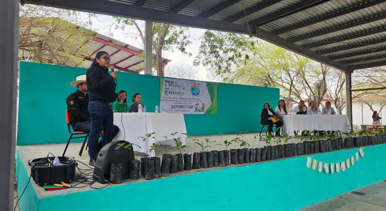 La directora de Fomento Forestal, Celene Ramírez García, en representación del secretario de Desarrollo Rural, Pesca y Acuacultura, Antonio Varela Flores, puso en marcha el taller que inicio con una campaña de reforestación en el Sector No. 9, en donde se les dirigieron unas palabras a los niños de preescolar, madres de familia y educadoras, sobre la importancia y los beneficios que tienen los árboles en nuestro entorno y vida diaria.
