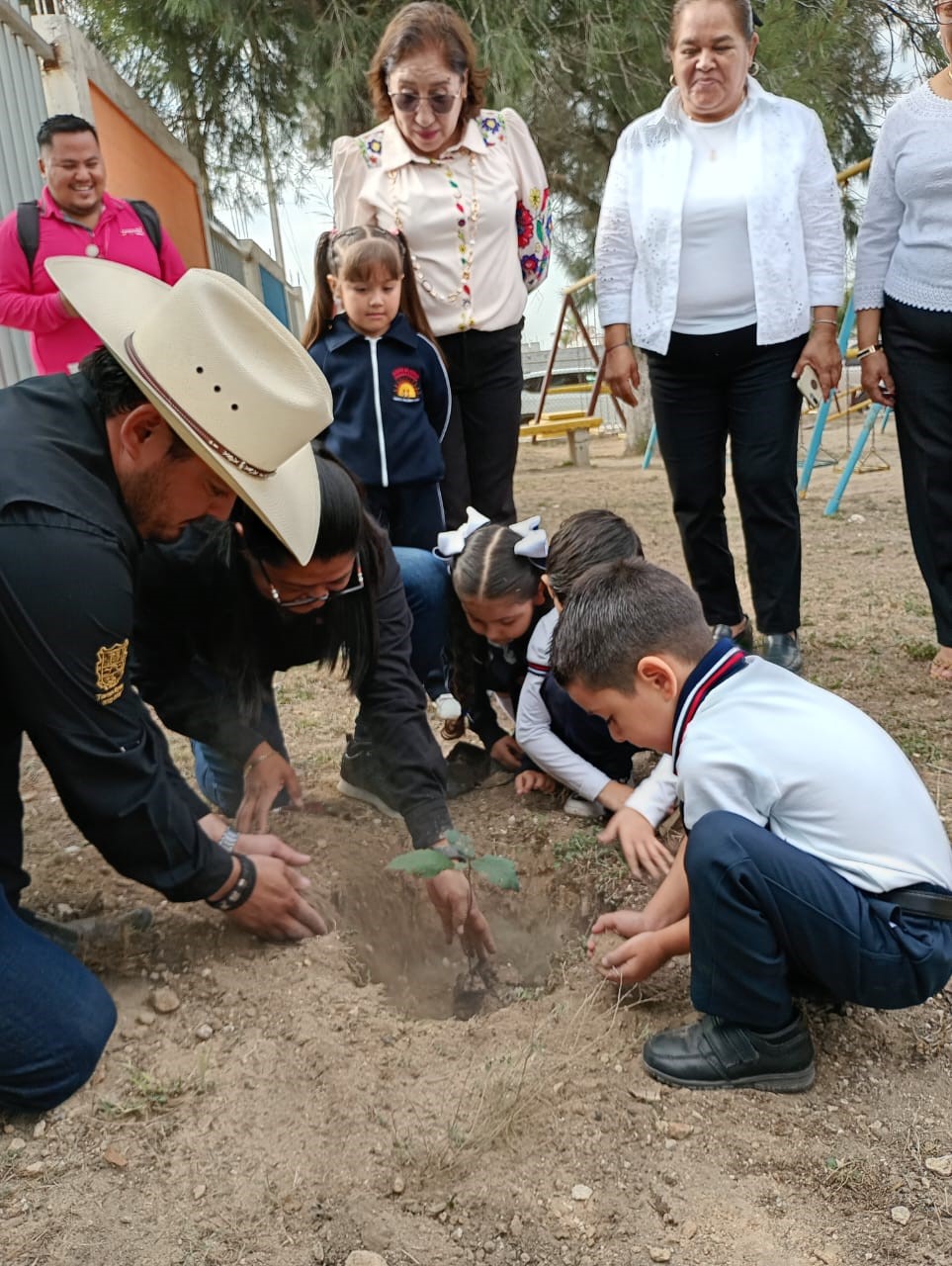 Posteriormente, con la participación de los niños se realizó la plantación de árboles de especies nativas adaptadas a la región, se les explicó el proceso de plantación y los cuidados para su desarrollo y crecimiento.
