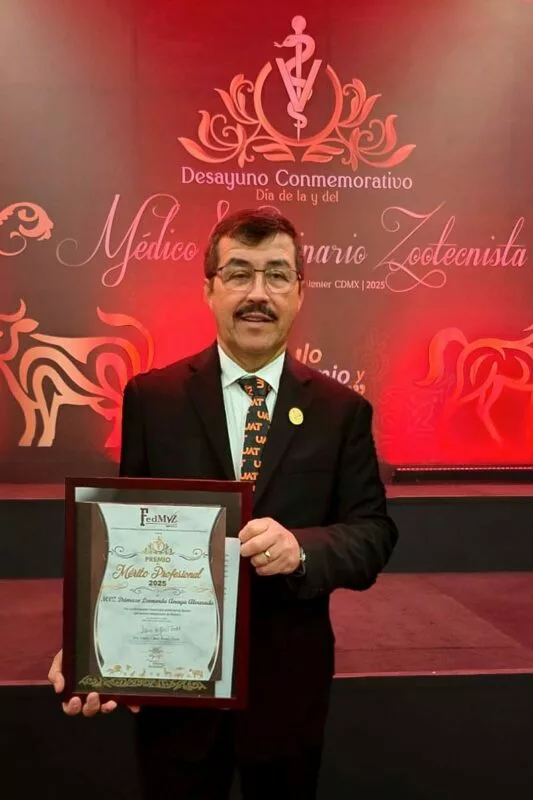 La ceremonia celebrada en la capital del país fue encabezada por el secretario de Agricultura y Desarrollo Rural del Gobierno de México, Julio Berdegué Sacristán, y la presidenta de la FedMVZ, Laura Arvizu Tovar, quienes resaltaron la importancia de reconocer la labor de los médicos veterinarios zootecnistas en la salud animal, la seguridad alimentaria y el bienestar social, destacando la contribución de líderes como el rector Dámaso Anaya para el fortalecimiento de este sector.