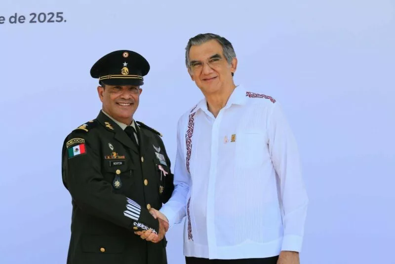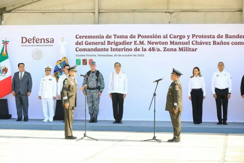 Ciudad Victoria, Tamaulipas. – El gobernador Américo Villarreal Anaya asistió como invitado de honor a la toma de posesión al cargo y protesta de bandera del general brigadier de Estado Mayor, Newton Manuel Chávez Baños, como comandante interino de la 48 Zona Militar.
